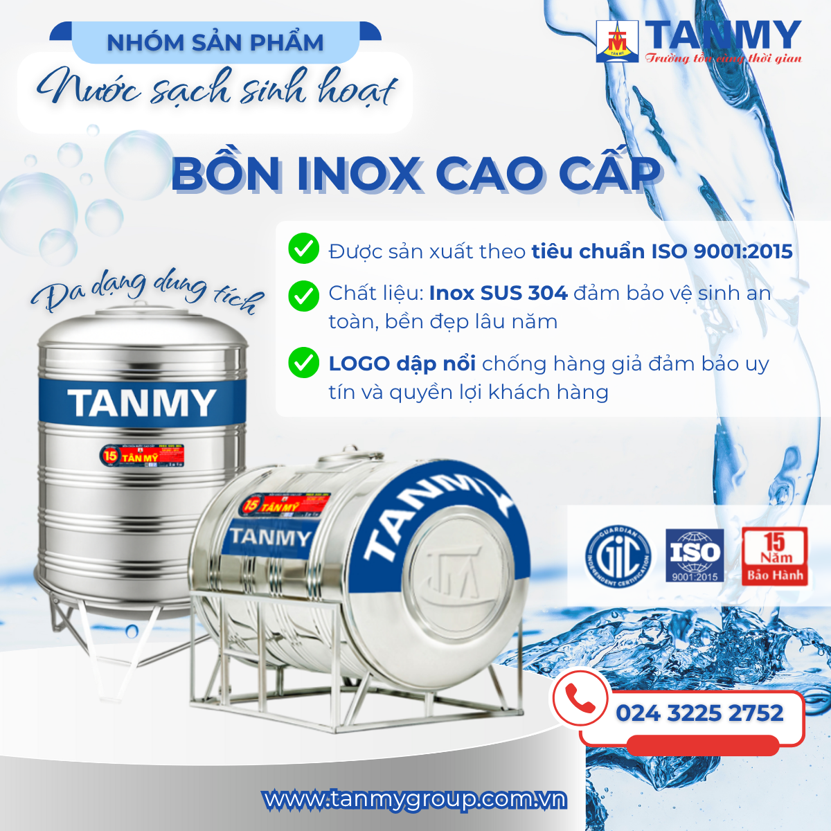 👇👇👇 Bồn inox: Sử dụng trong việc trữ nước máy, nước đã qua xử lý,…