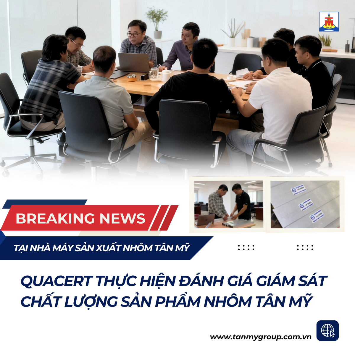 Ngày 28/10/2025 vừa qua, đại diện Trung tâm Chứng nhận Phù hợp (QUACERT) đã có buổi làm việc và thực hiện đánh giá giám sát chất lượng hai dạng sản phẩm nhôm và hợp kim nhôm gia công áp lực tại Nhà máy Nhôm Tân Mỹ.