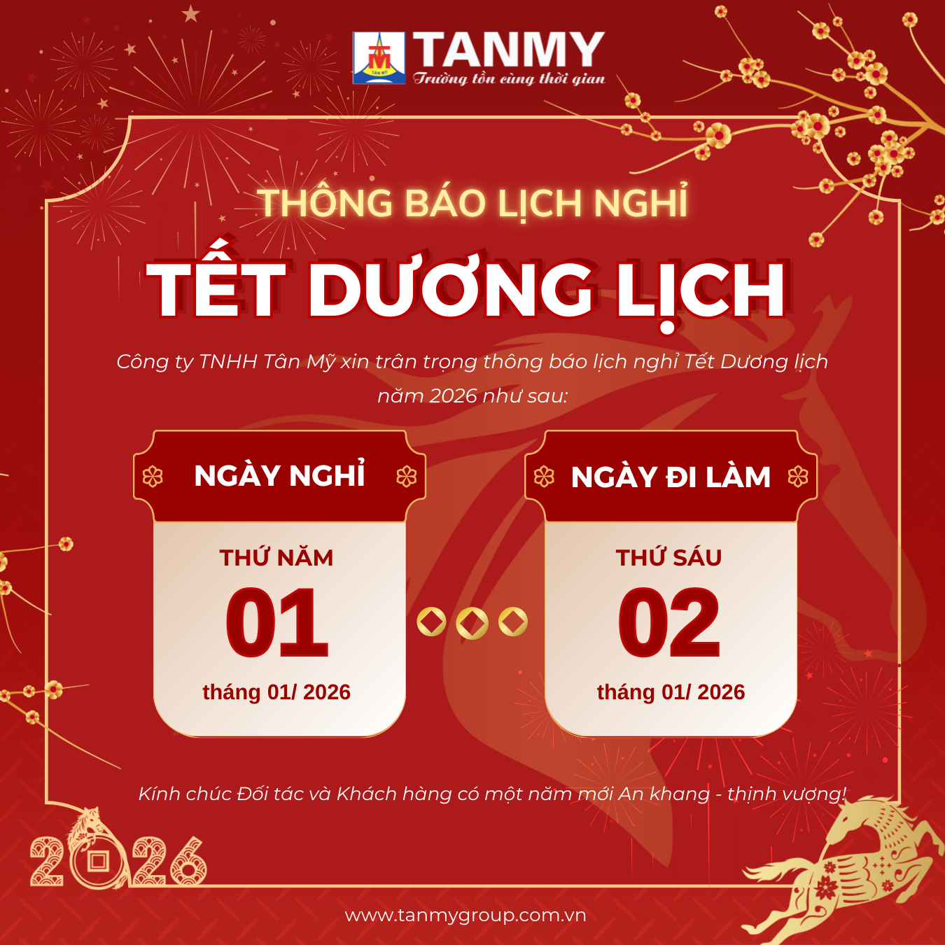 Nhân dịp Tết Dương lịch 2026, công ty TNHH Tân Mỹ xin trân trọng thông báo lịch nghỉ như sau: