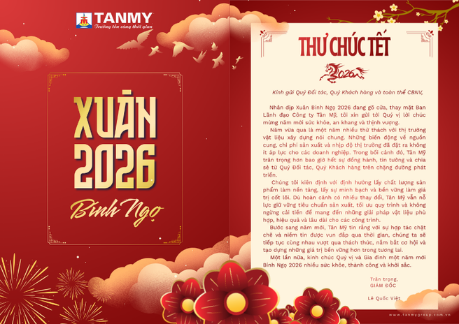 Dưới đây là Thư chúc Tết của Giám đốc Công ty TNHH Tân Mỹ gửi tới Quý khách hàng và Quý đối tác nhân dịp năm mới 2026.
